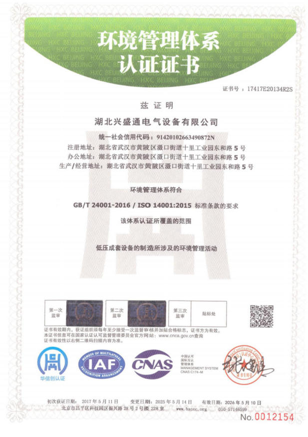 環(huán)境管理體系認證證書